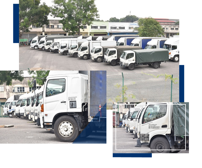 Our own fleet of lorries with discipline drivers to guarantee clean storage and delivery on times. No external products are allowed in the trunk to comply with Halal certification